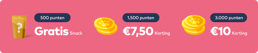 Heb je genoeg punten gespaard? Dan kun je ze eenvoudig inzetten tijdens het afrekenen voor korting. Je kiest zelf wanneer en waarvoor je ze gebruikt. Je kunt je punten inwisselen voor: